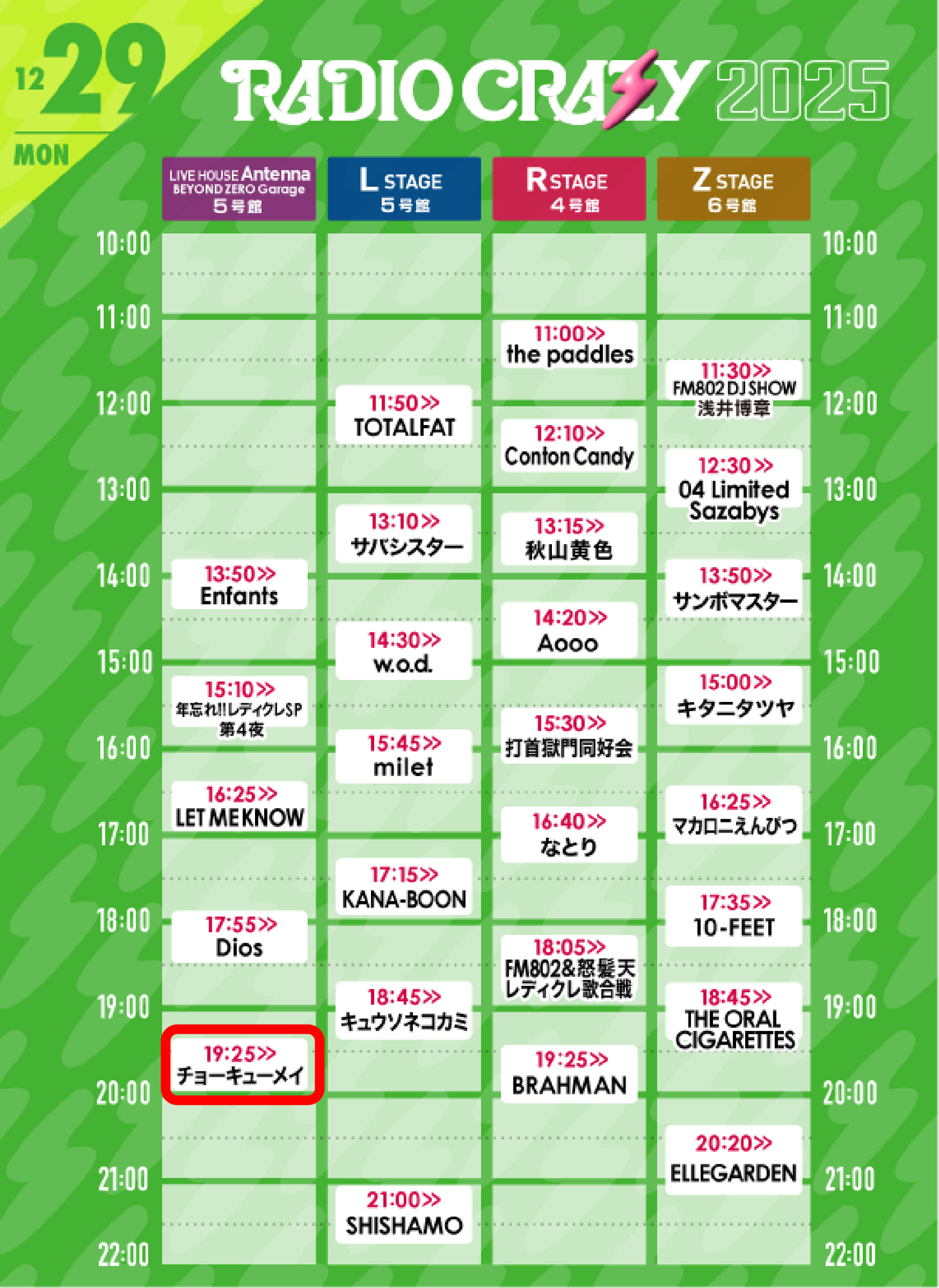 【タイムテーブル発表】12/29(月)出演・FM802 ROCK FESTIVAL RADIO CRAZY 2025