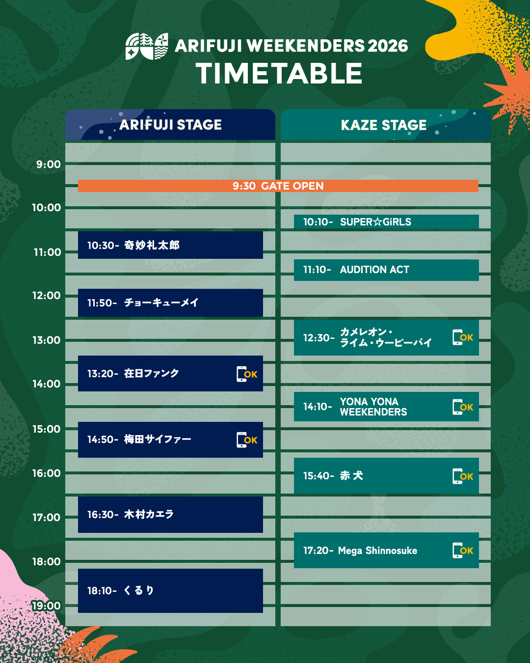 ARIFUJI WEEKENDERS 2026 タイムテーブル決定!