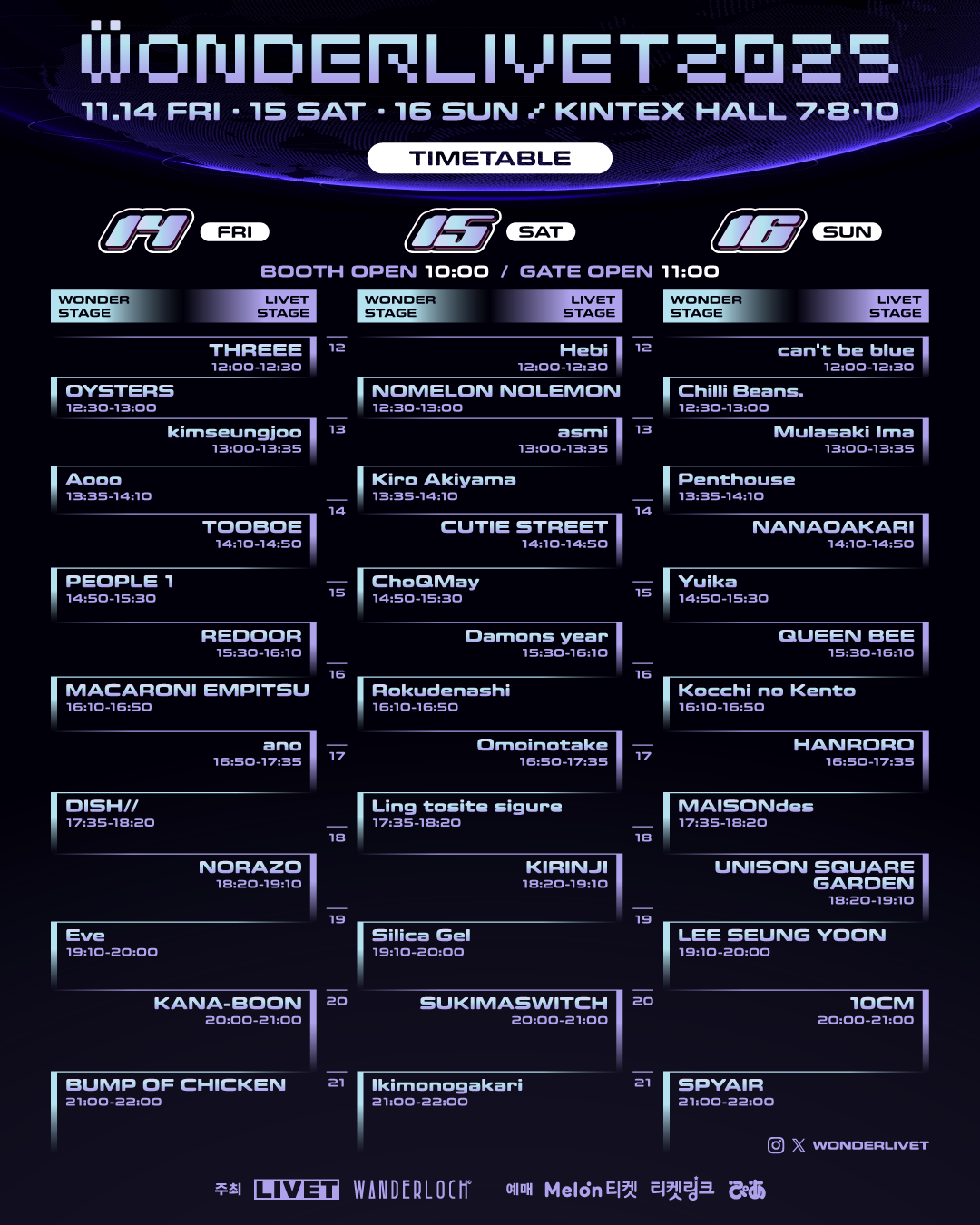 【韓国】11/14(金)音楽フェスティバル「WONDERLIVET 2025」 タイムテーブル公開!